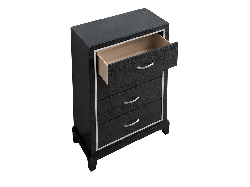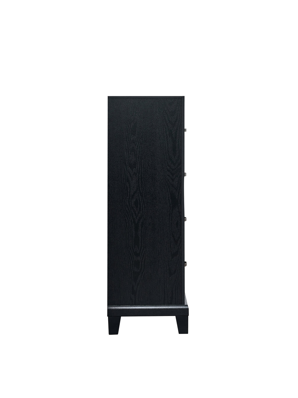 - Black finish with subtle wood grain texture offers refined style and modern visual appeal.