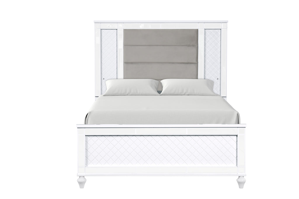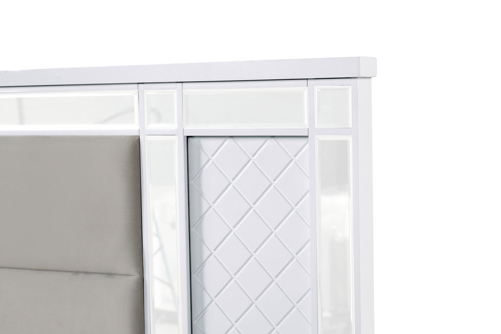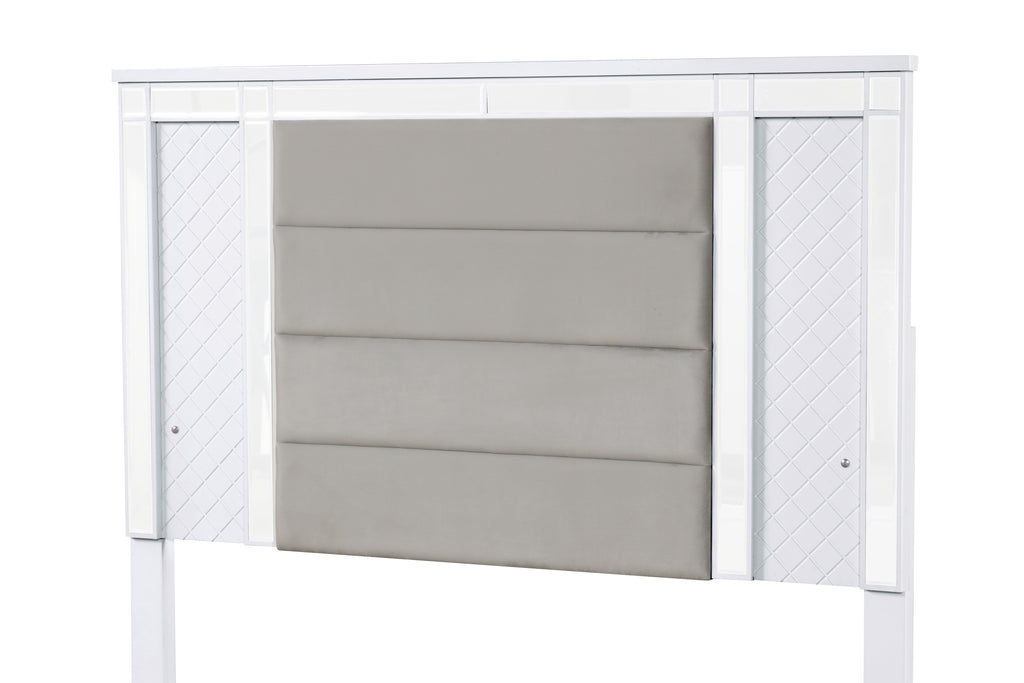 - Velvet-like upholstered headboard ensures comfort while giving the bed a sophisticated look and feel.