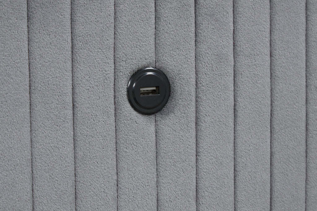 The perfect mixture of the latest technology, style, utility, and comfort. This Lizelle King 4PC Bedroom Set is the ultimate standard of modern-day furniture technology. The bed is one of a kind and equipped with a display of a fireplace on its headboard. The fireplace will create an ambiance in your room like no other bedroom set on the market. It includes a remote that can change the fireplace display in 6 different colors. The fireplace is for display only and DOES NOT EMIT HEAT. The bed also has USB and Bluetooth speakers, making it convenient to charge your phones and listen to your favorite music with top-quality inbuilt speakers. The footboard and side rails have a unique design padded with velvet upholstery. The tall headboard size will give your room a broader feel, and the velvet upholstery material will mesmerize you at every touch. Available in Grey, Blue, Beige, and Black colors. We take pride in being the first pioneers in implementing such a design/technology and can assure you that you won't find a similar set anywhere else in the market. This bed collection is revolutionary for many reasons. Get yours now before it's too late. We assure you that this will surpass your expectations. This set includes the King size bed, 2 drawer Night stand, 9 drawer dresser with Mirror.