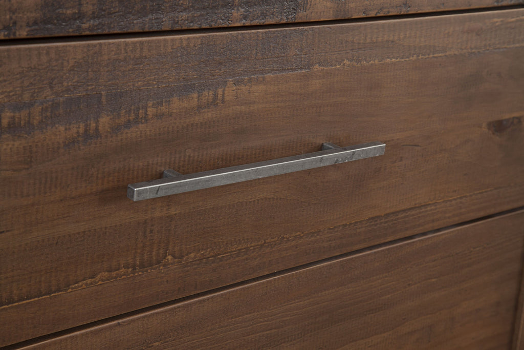 - The wood is hand-stained in a natural multi-step mocha finish to highlight the natural grain and knots of the wood