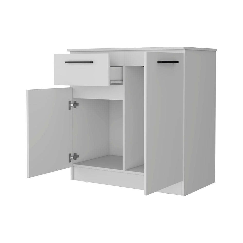 The Dresser with 1-Drawer and 2-Door combines style and practicality, complementing any decor with its white or black manufactured wood finish. Its superior top is ideal for displaying decor items like photos, plants, or candles, adding a personal touch to your bedroom or guest room.