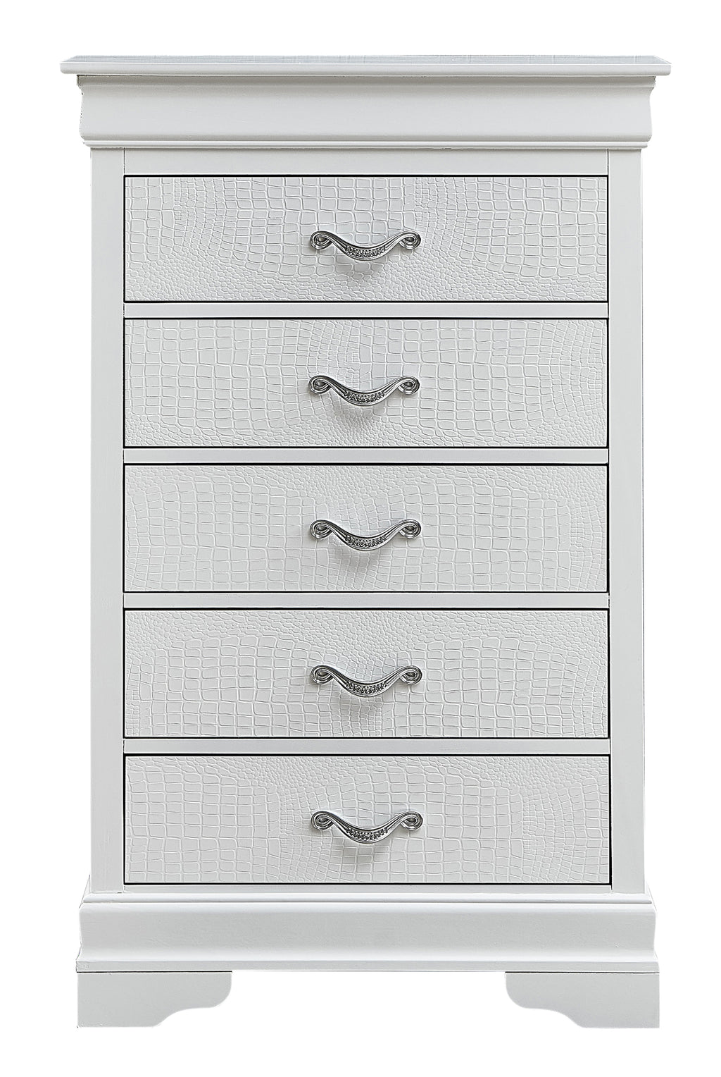 The standout croc finish on the drawer fronts serves to enhance its overall beauty while providing a unique character that will entice anyone who enters the room. Arriving fully prepared for immediate use, this stylish and functional chest transforms your bedroom while making organization simple and enjoyable.