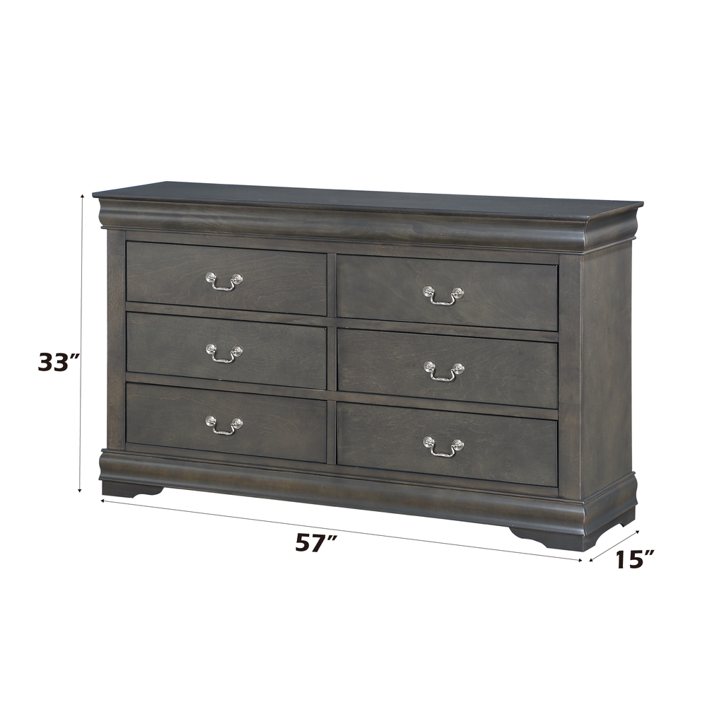 - This sophisticated dark gray dresser showcases a sleek design with six spacious drawers, offering a perfect blend of style and functionality.