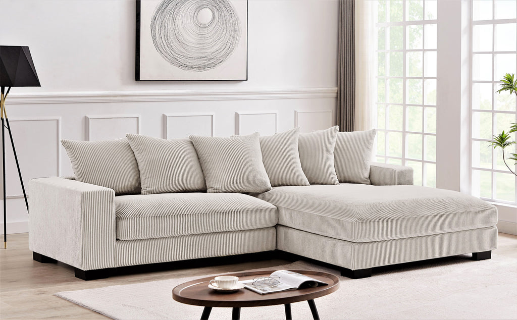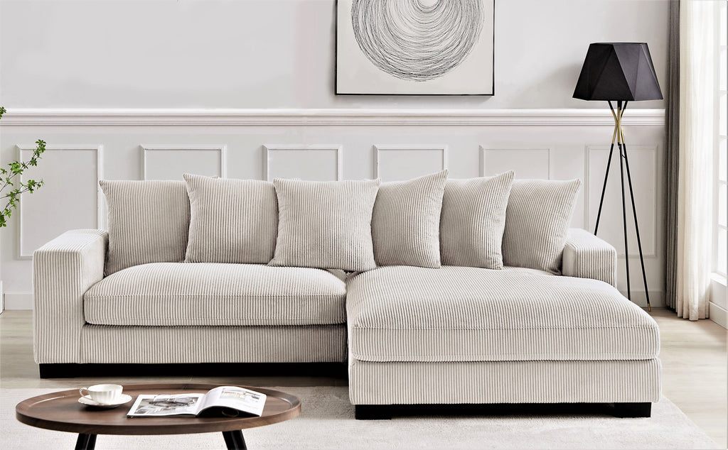 - VERSATILE COLOR: The soft ivory shade of this L shaped sofa imparts a touch of elegance while maintaining a neutral tone that beautifully complements various interior styles, creating a cozy atmosphere.