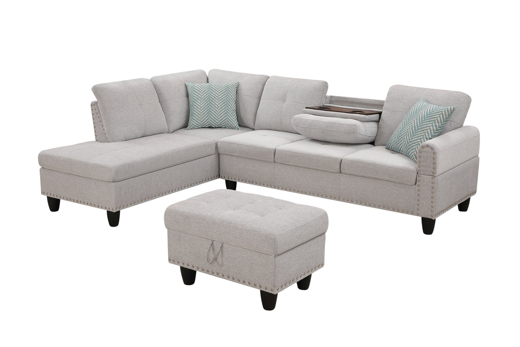 - Seating & Silhouette: L - shaped 3 - piece sectional seats four, ideal for game/movie nights, with a pull - down middle seat having two cup holders.