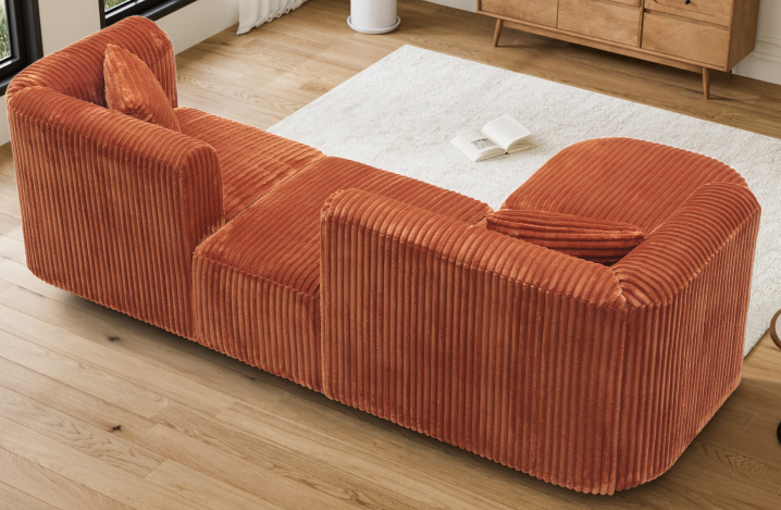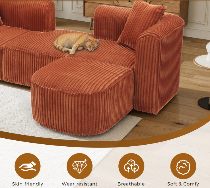 - Modern Curved Design - Our minimalist modular sectional sofa featuring smooth Corduroy fabric and sleek, curved lines that add an appealing touch to your living space. The L-shape 4 seater corner couch with movable ottoman design makes it suitable for relaxing with your family.
