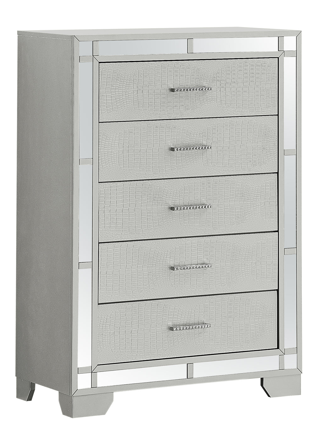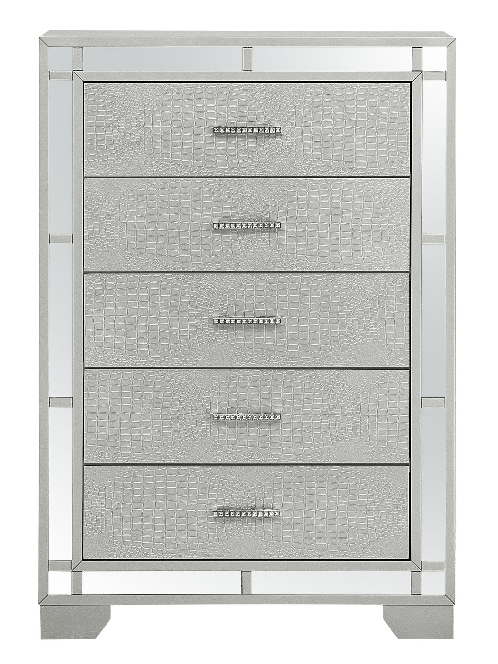 - Unique Croc Textured Finish is Embossed In Real Wood on Dovetailed Drawers