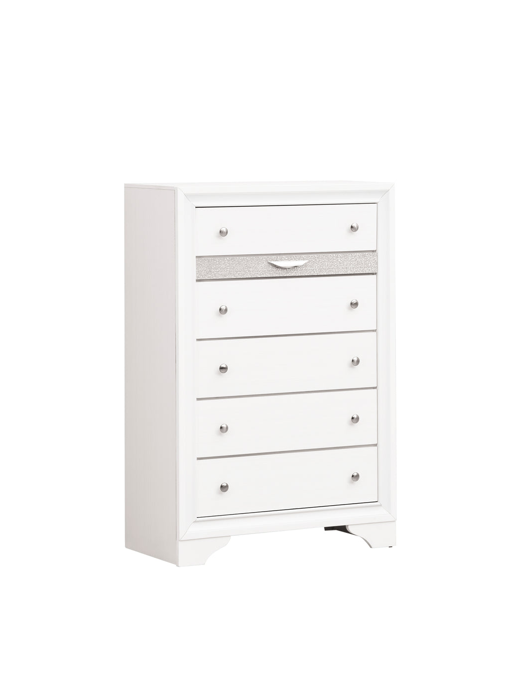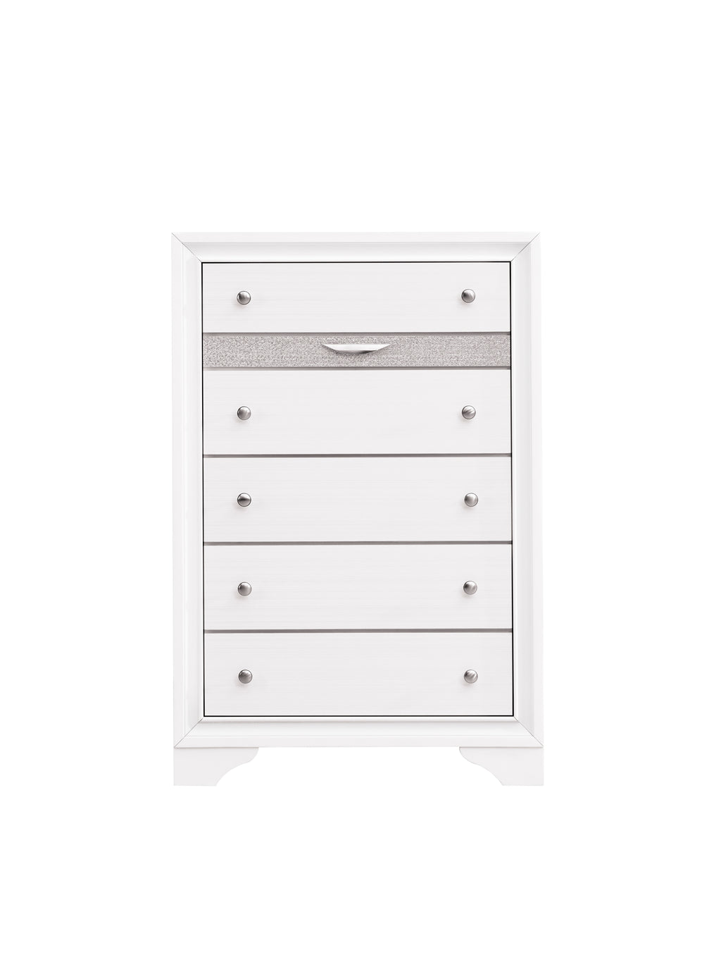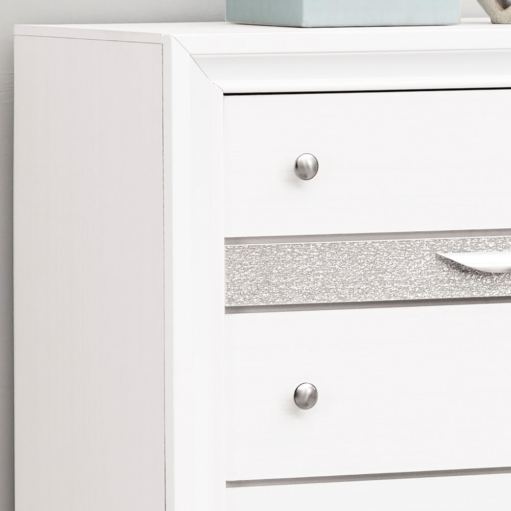 With overall dimensions of 51'H x 34'W x 17'D, this unit is versatile enough to fit into various settings, whether placed in a bedroom, hallway, or office. The full extension drawer guides make accessing your belongings a hassle-free experience. Additionally, the acrylic silver trim panel adds an elegant flair, resembling crystal and enhancing the piece’s attractiveness. The nickel handles are designed to resist tarnishing, ensuring they remain shiny and new.
