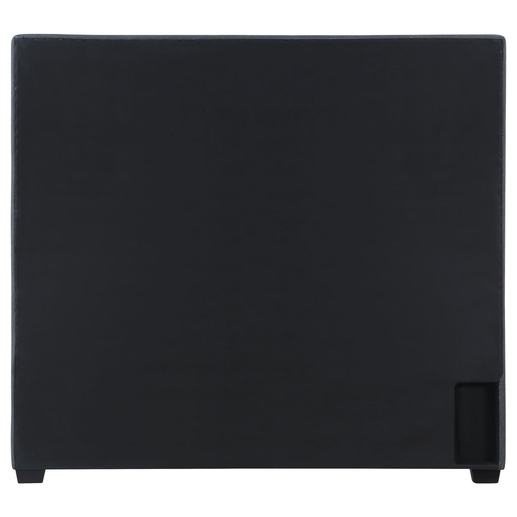 Chic and savvy contemporary vibes outline a crisp design perfect for a modern bedroom when this contemporary bed takes center stage. Wrapped in lush charcoal fabric with hand-driven nailed trim, its headboard adds dimension with a scalloped stitch pattern, and matching padded side rails and a matching footboard make a dynamic addition to a classic custom bedroom.