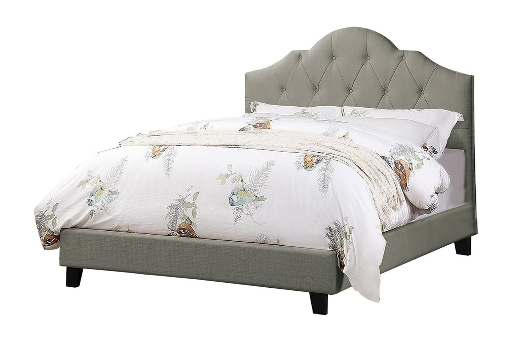Distinguish your style with this upholstered bed frame that features a majestic arch with accent tufting. Rest on a durable frame that delights your senses as your rest. Available in grey and beige