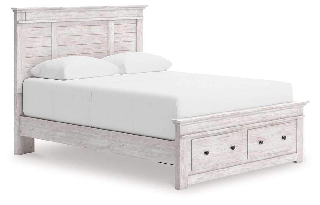 Makidern - Queen Panel Storage Bed With Storage Footboard - Whitewash