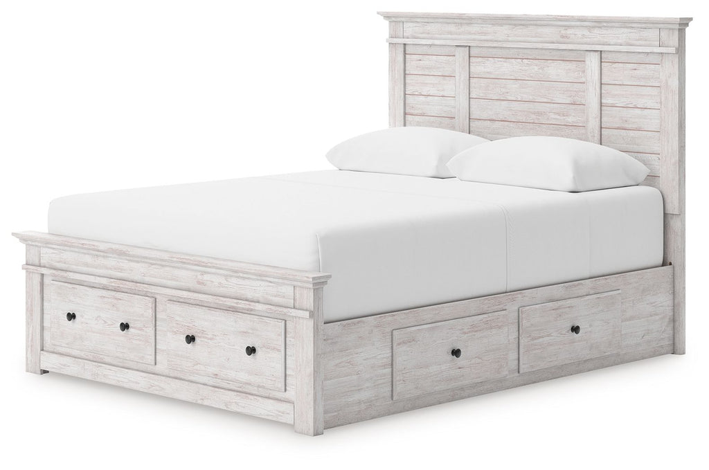 Makidern - Queen Panel Storage Bed With Under Bed Storage Unit - Whitewash