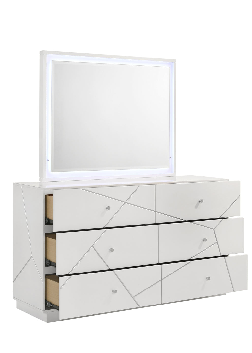 Elevate your bedroom decor with our luxurious Manhattan Bedroom Set, designed for both elegance and functionality. This set is available in both 4-piece and 5-piece configurations to suit any space and storage needs. Each piece is finished in a stunning lacquer finish, providing a bright, sophisticated look that complements any modern decor. The geometric patterns across the pieces add a contemporary touch, while the integrated LED lighting on the bed and mirror creates a serene ambiance. Choose the 4-piece set for a cohesive look or the 5-piece set for additional storage and convenience.