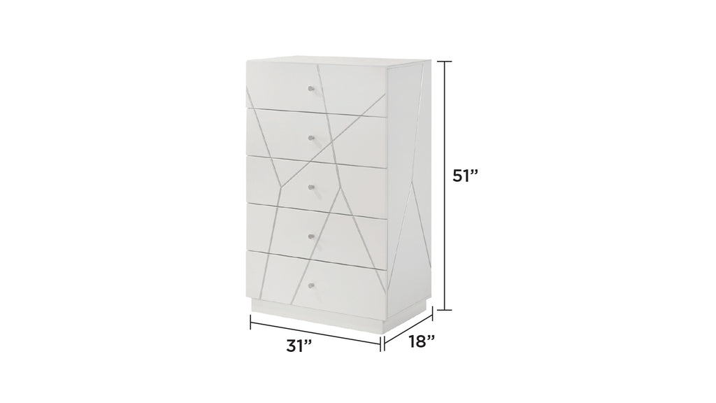 Elevate your bedroom decor with our luxurious Manhattan Bedroom Set, designed for both elegance and functionality. This set is available in both 4-piece and 5-piece configurations to suit any space and storage needs. Each piece is finished in a stunning lacquer finish, providing a bright, sophisticated look that complements any modern decor. The geometric patterns across the pieces add a contemporary touch, while the integrated LED lighting on the bed and mirror creates a serene ambiance. Choose the 4-piece set for a cohesive look or the 5-piece set for additional storage and convenience.