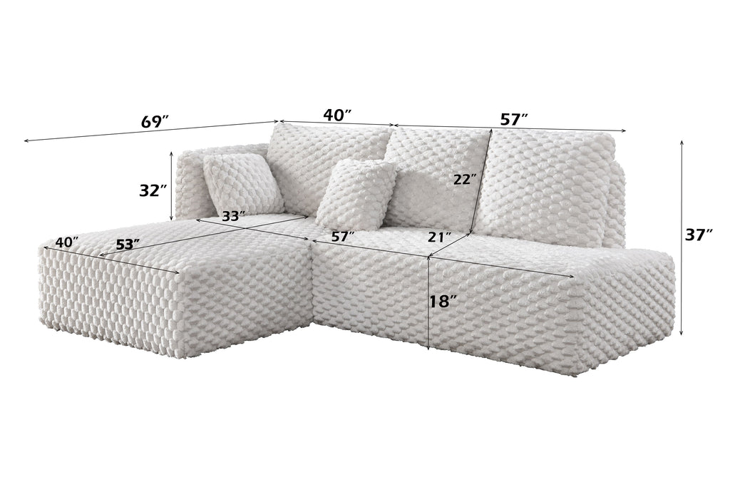- Left Facing Chaise Overall Dimension: 69'W x 40'D x 37'H, Seat Width: 33', Seat Depth: 53', Armrest Height: 32', Back Height: 22', Seat Height: 18'