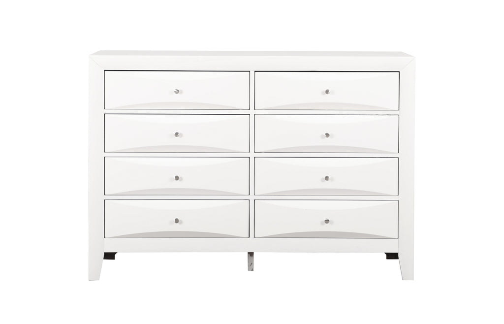Each drawer is highlighted by beveled fronts, which enhance the dresser's aesthetic appeal and contribute to its refined look.
