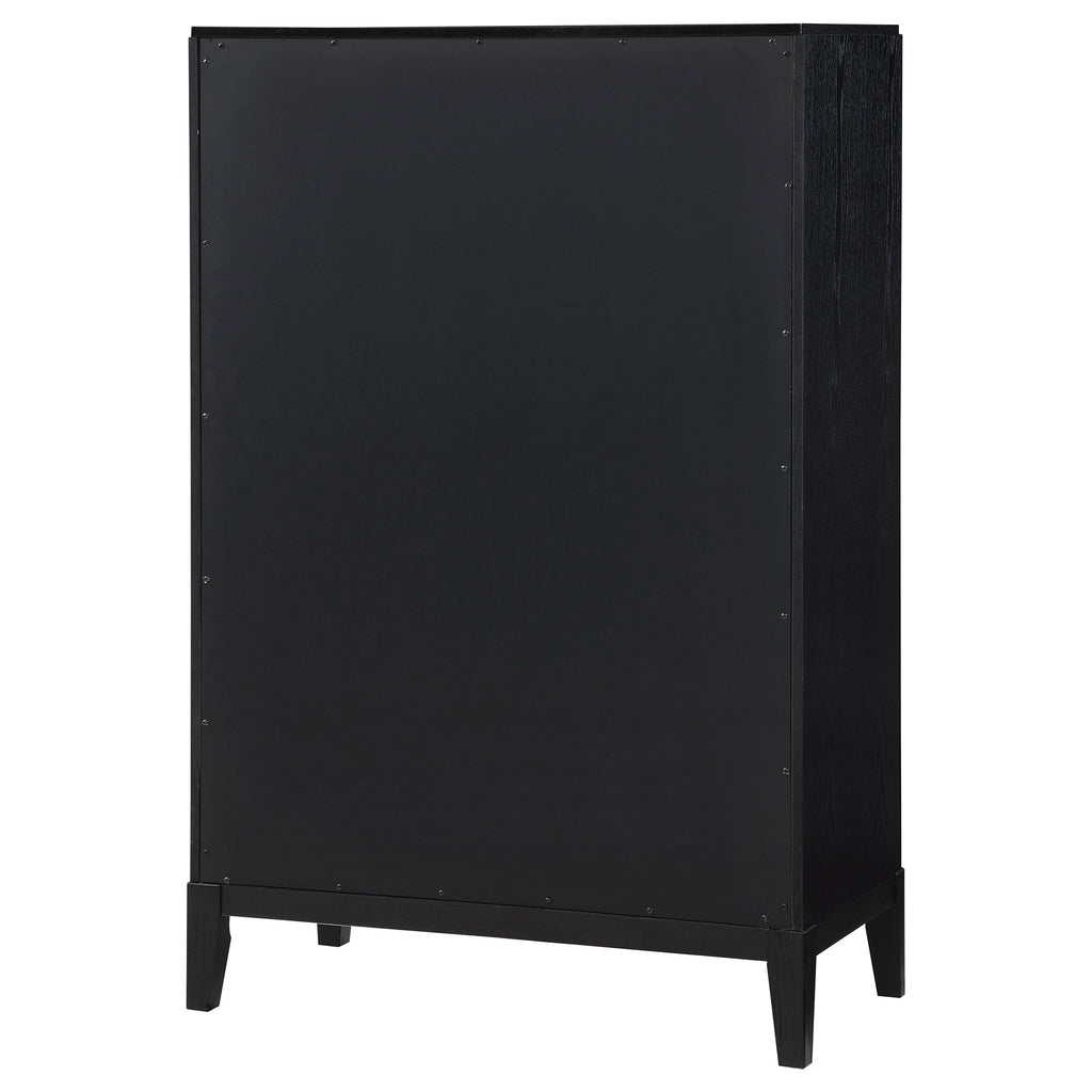 - Contemporary wood chest boasts a stylish wire brushed black finish that enhances modern and sophisticated interiors