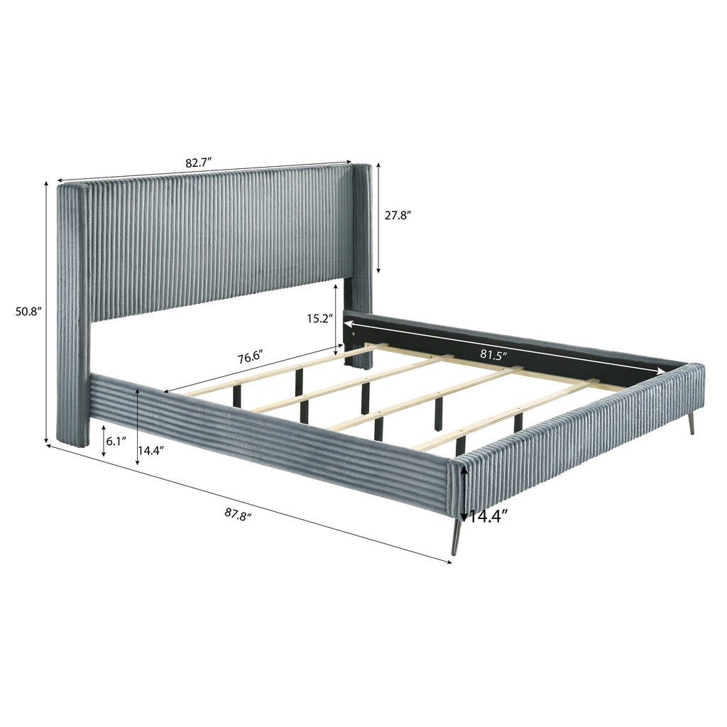 Mavela Wide Wale Corduroy Upholstery Panel King Bed with 2 Nightstands, Blue