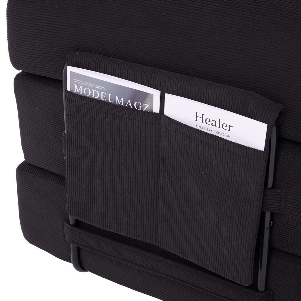 - A storage pocket is attached to the frame, keeping magazines, remote controls, or tablets within easy reach. This keeps your living area tidy and functional.