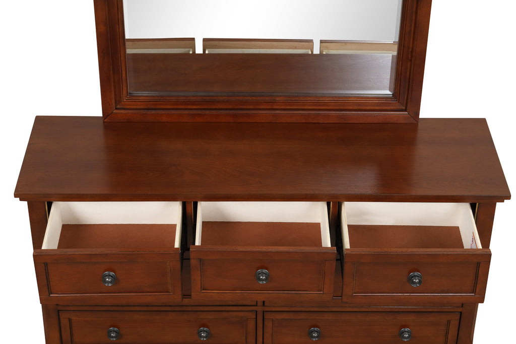 This functional dresser combines practicality with a beautiful cherry finish, which invites warmth and style into your space.