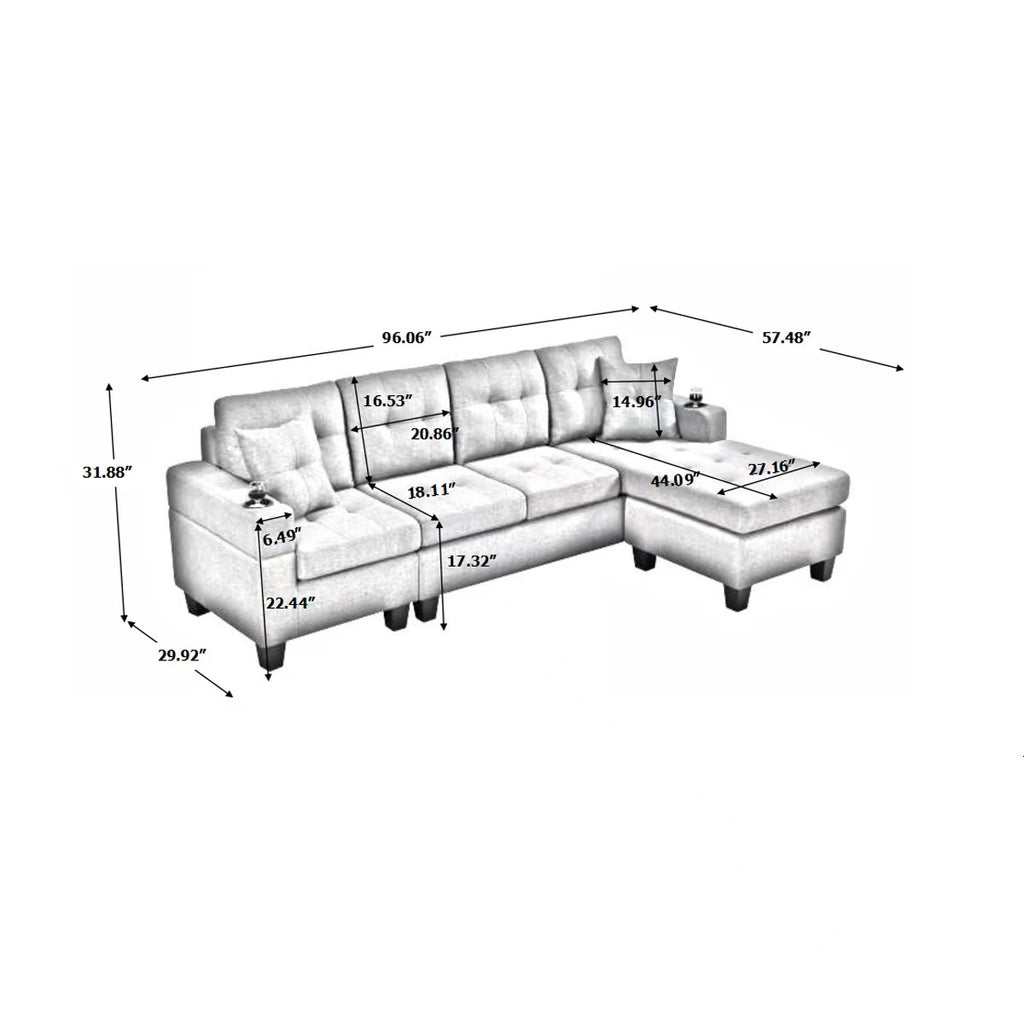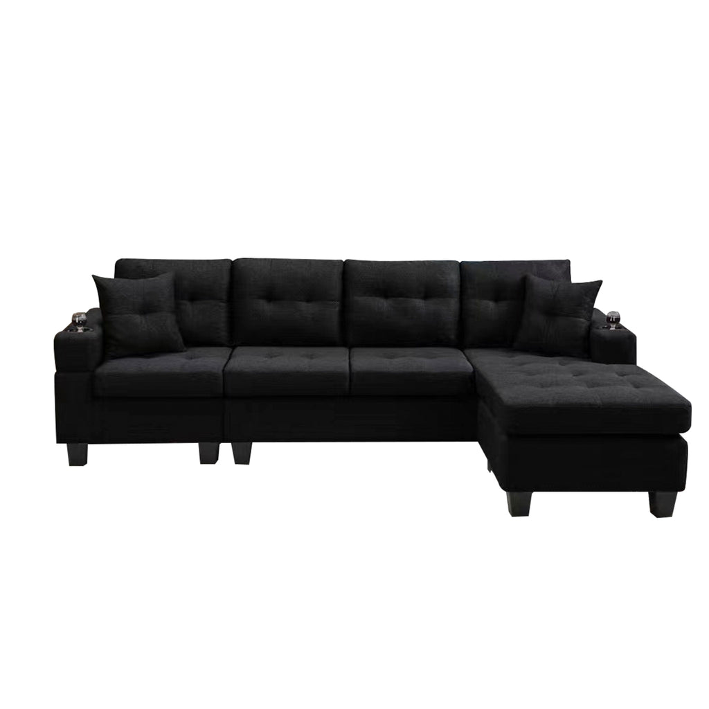 1: Backrest pull point, modern design, filled with S-shaped spring and high-density foam, comfortable sitting and good resilience. 2: The left and right corners cannot be freely interchanged 3. Plastic feet, wear-resistant, prevent scratching the floor, effectively avoid noise, and create a comfortable environment. 4: Equipped with double pillows of the same fabric, comfortable and soft. 5: Bilateral cup holder, humanized design, can place water cups, mobile phones, etc.