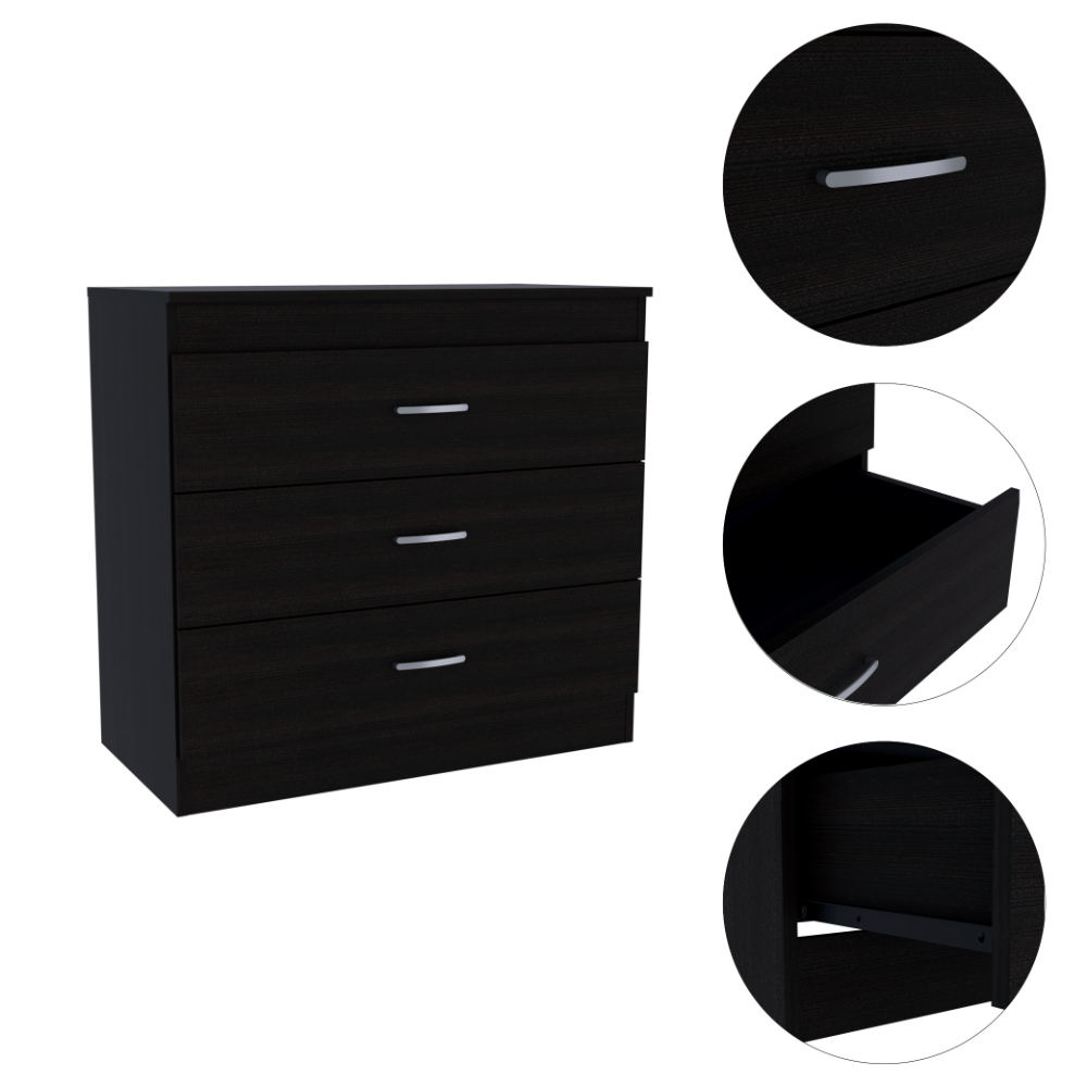 - Smooth finish metal handles on each drawer