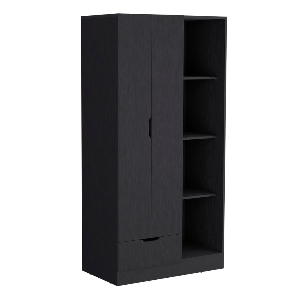 - The roomy double-door cabinet provides ample space for your clothing, outerwear, and accessories, while the built-in hanging rod ensures wrinkle-free storage for your most cherished garments.