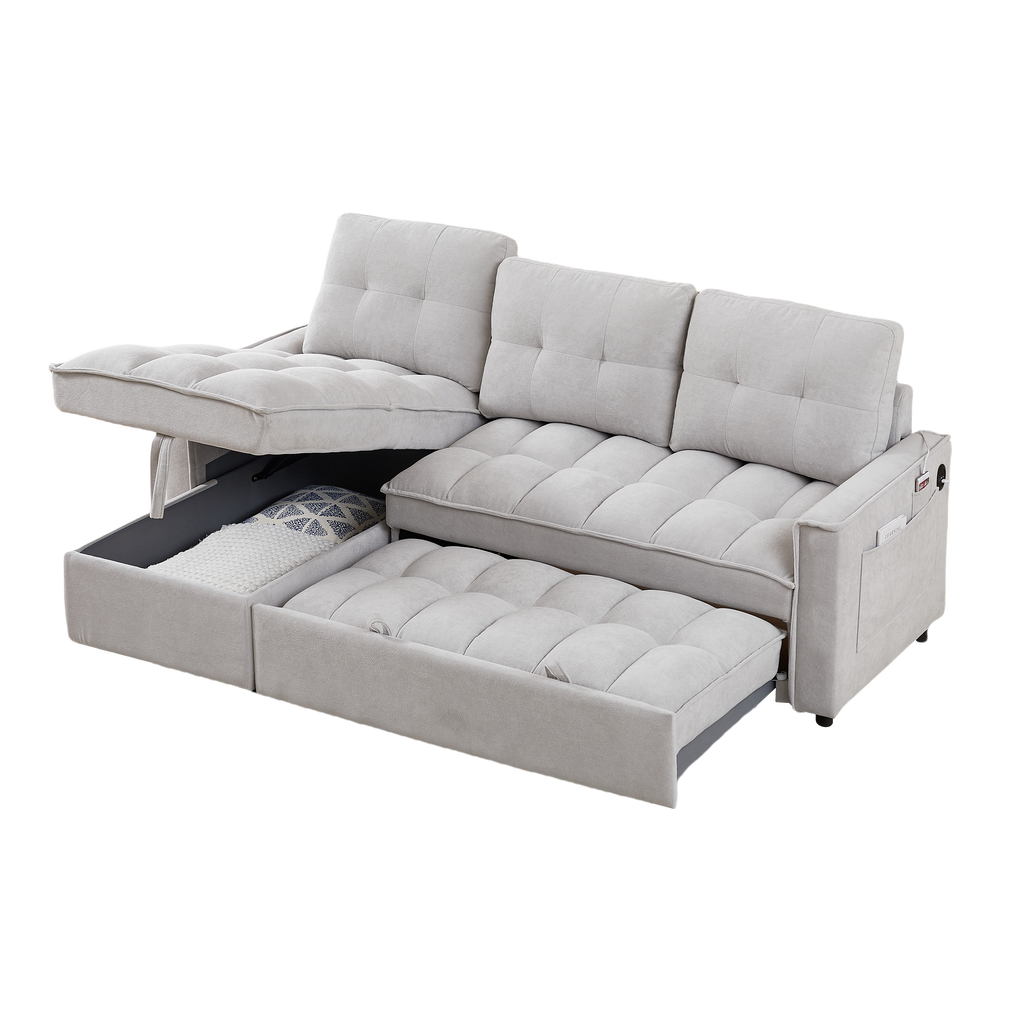 - ✔ STORAGE SPACE: The sleeper sofa has a hidden storage space underneath the chaise area and side storage pockets that provide an extra area for blankets, pillows, magazines, remotes or other items. This remarkable feature makes it an exceptional choice for those with limited storage space in their home.