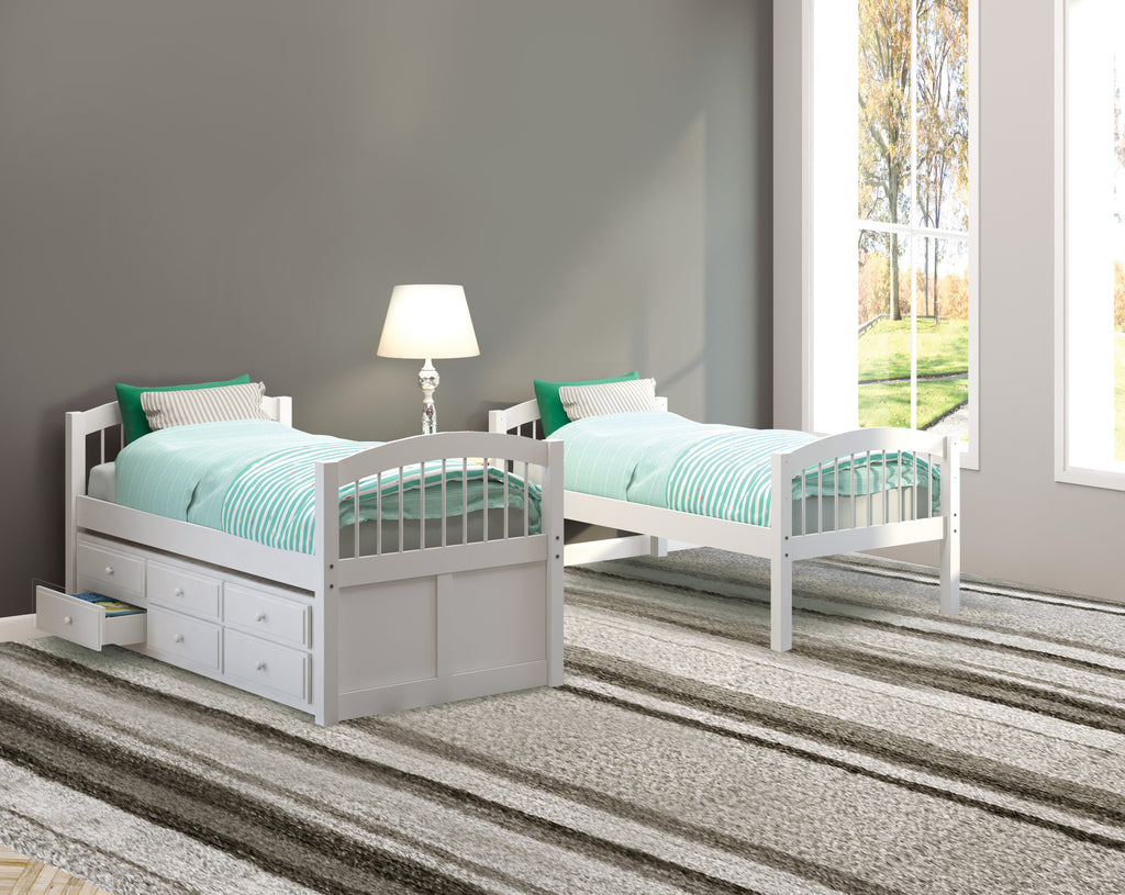 - T/T Bunk & Trundle w/3 Drawer, Slat System (13+13+13), Convertible (To be used Stacked or 2 Separated Beds