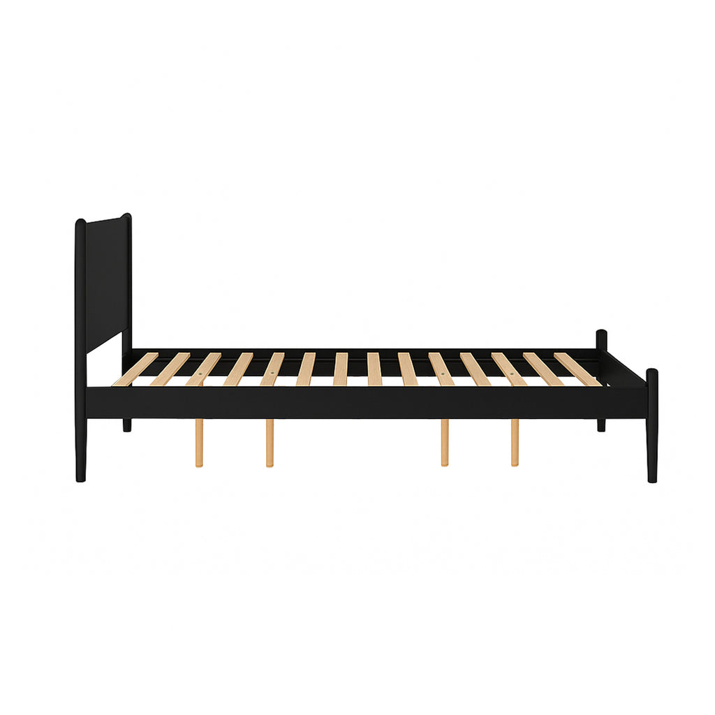 Upgrade your bedroom with the striking simplicity of this Mid-Century modern platform bed, crafted from solid wood and finished in a rich matte black for a bold, refined look. Designed with a Full Size frame, it features clean lines, slightly tapered legs, and a tall, smooth headboard that adds height and elegance to your space. The supportive slatted platform eliminates the need for a box spring while improving airflow and mattress life, making this bed both functional and effortlessly stylish for modern living.