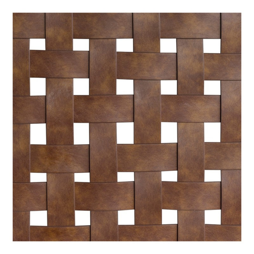 - Mid-century modern bed features a woven headboard made of quality faux leather and solid wood frame