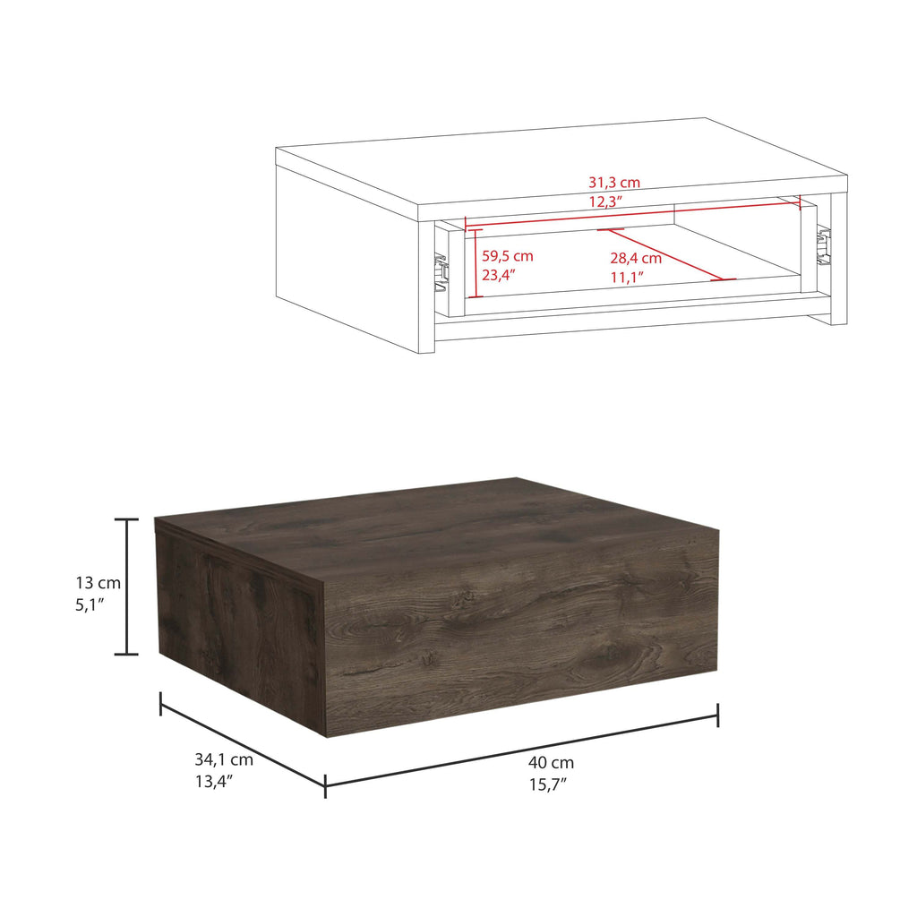 Milano Floating Nightstand Wall-Mounted Drawer End Side Table Dark Brown