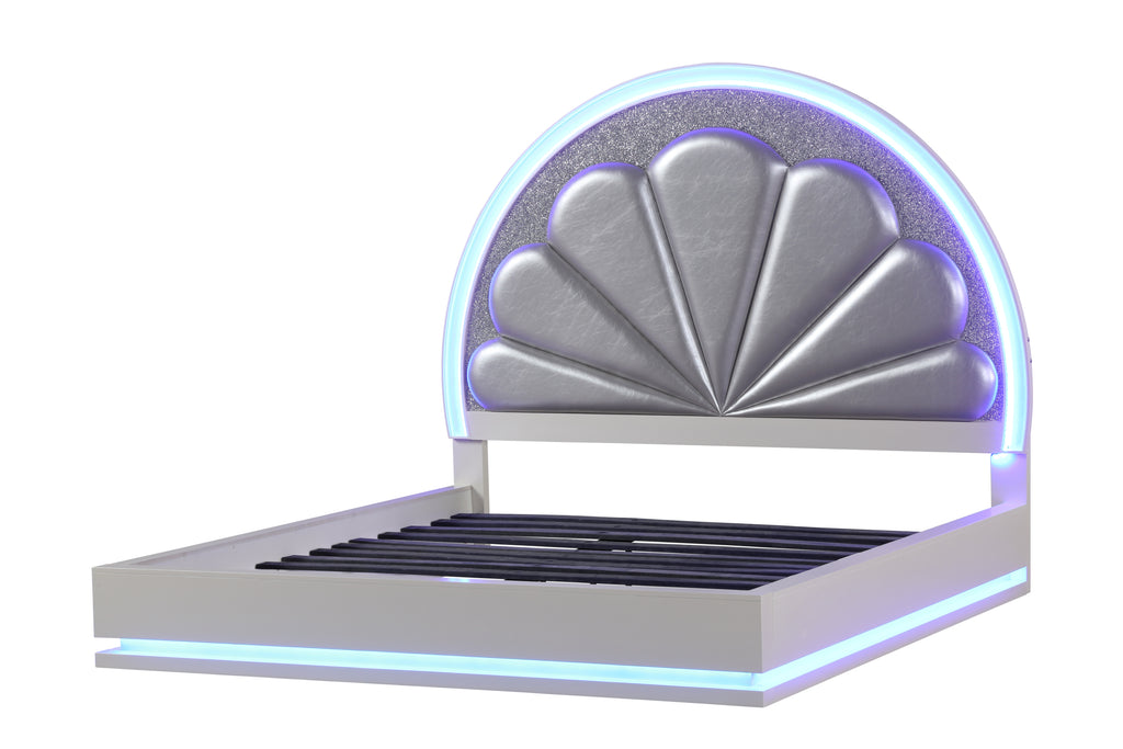 Are you looking to upgrade your bedroom? Well, you have come to the right place. This is the perfect one-of-a-kind bedroom set that can transform your room like no other bedroom set in the market. Glamorous, alluring, and luxurious are a few words to describe this beautiful piece of furniture. This is a perfect apparatus to lift the character and atmosphere of your bedroom. Each piece in this bedroom set is equipped with ambiance enhancing LED lights, and this LED accent offers the perfect highlight even after the lights go out. The upholstered headboard features channel tufting, adding extra flair to this glamorous piece. The crystal pattern under the light gives it more depth. You will find this beautiful crystal-like pattern near all the lights on every case piece.