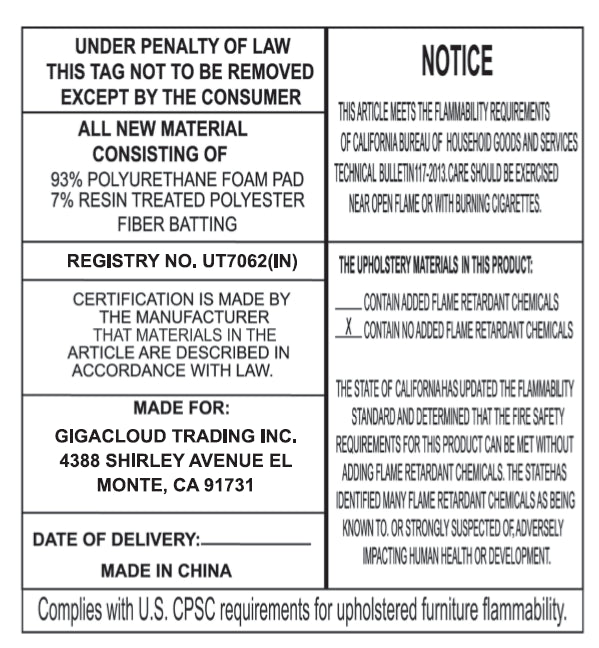 | Upholstery Material | 100% Polyester |