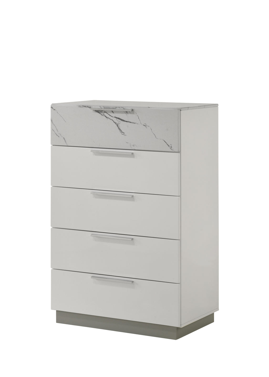 • Two-Tone High-Gloss Marble and Lacquer Finish: The luxurious marble-patterned surfaces on the bed, dresser, nightstand, and chest elevate the overall aesthetic.