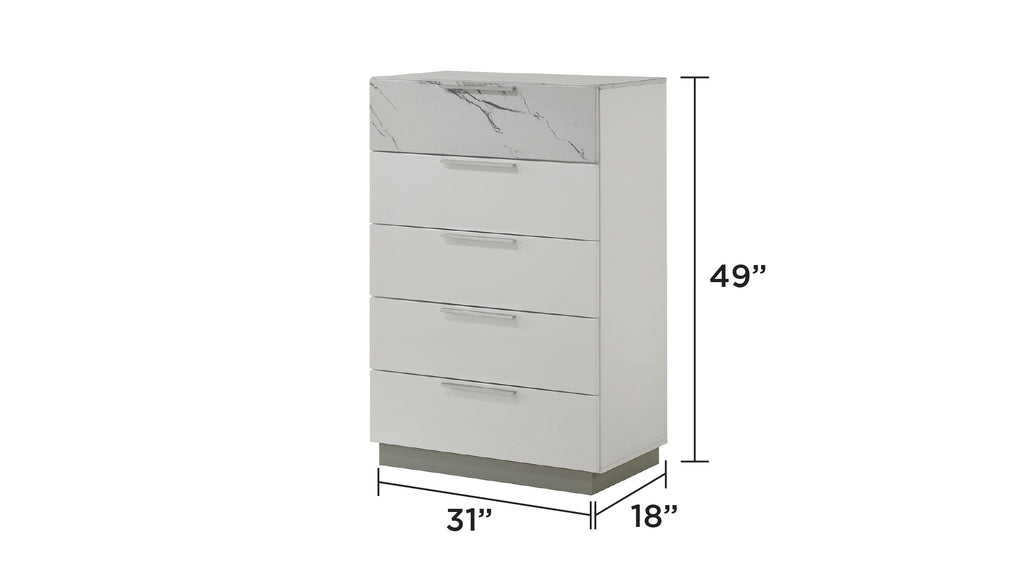 Mist Queen 5-Pc White Marble & Lacquer LED Bedroom Set