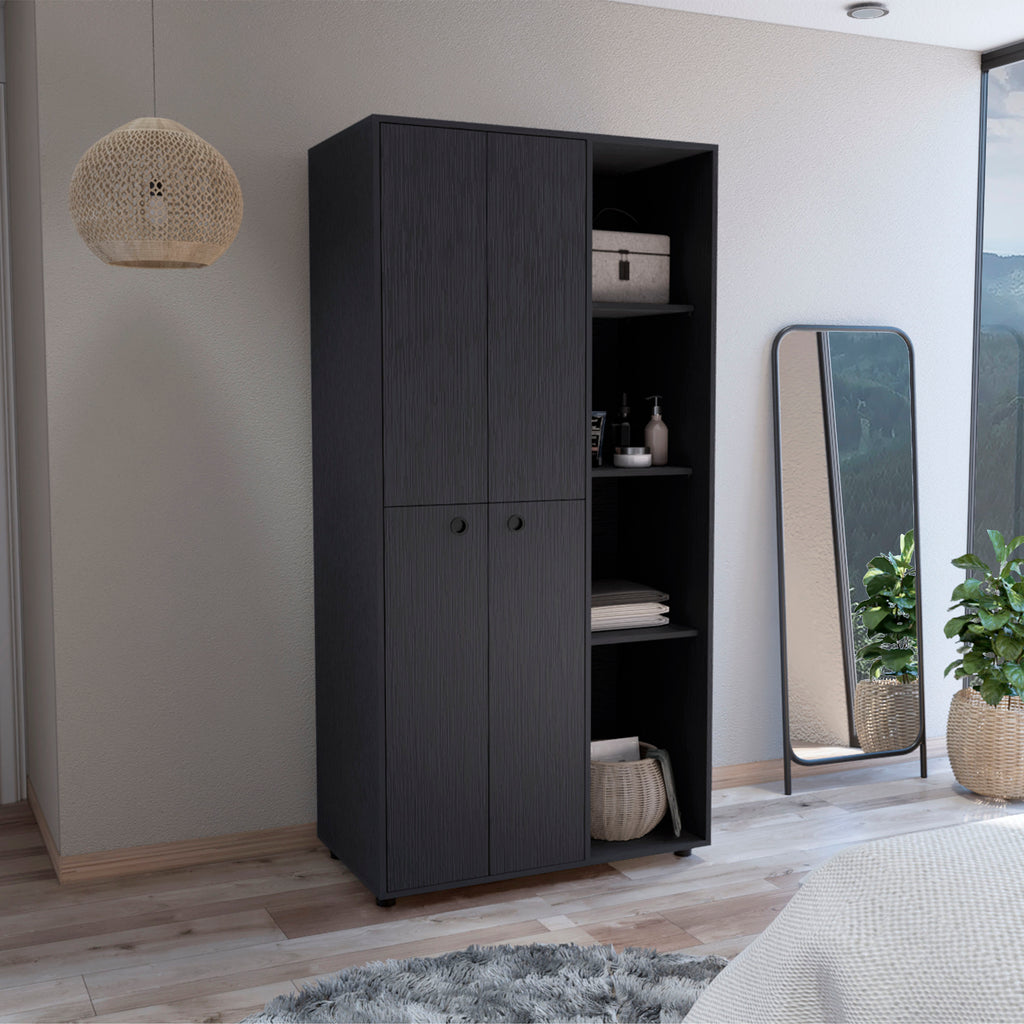 Misuri Black Wardrobe Armoire: Double Door, Drawer, Hanging Rods