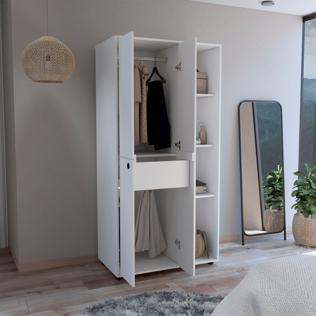 - Dedicated Clothes Space: Convenient metal rods for hanging attire.