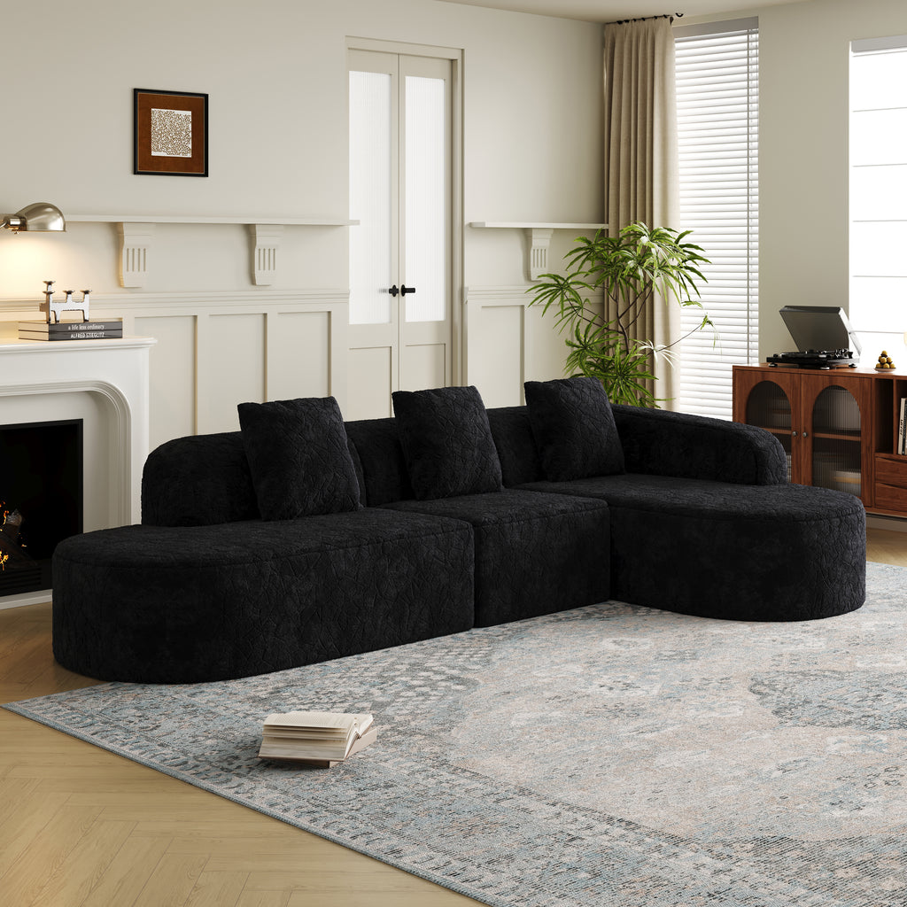 - Extra-Wide Chaise Lounge:This curved modular sofa features an extended chaise lounge section, with both chaise lounges and the center section forming an L-shaped configuration. More stylish and adaptable to various home layouts.
