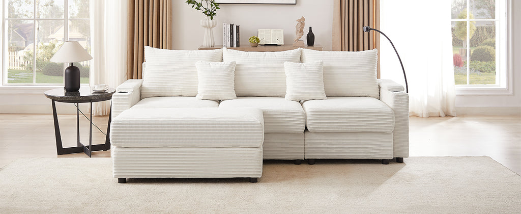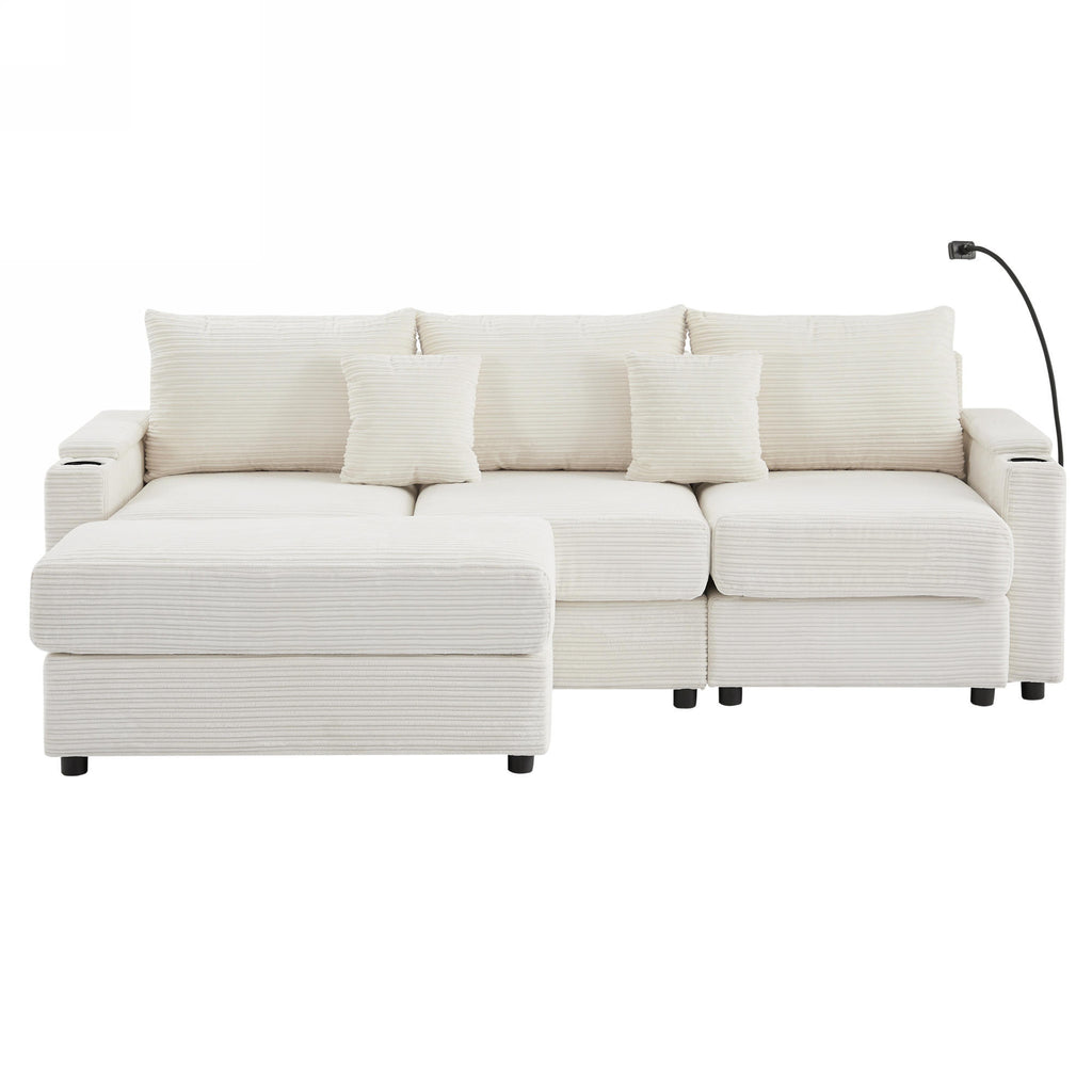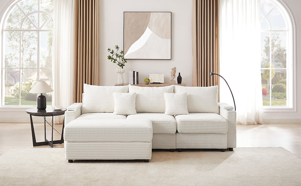 This modular sofa set features multiple seating options and ottomans, allowing you to purchase additional modules to create a variety of configurations. The movable ottoman adds flexibility, enabling you to find the perfect spot for sitting or lounging. Crafted with a solid frame and wrapped in textured corduroy upholstery, this set combines durability with style. Ideal for your living room, home office, or reception area, it effortlessly reflects your personal taste while creating a cozy atmosphere.
