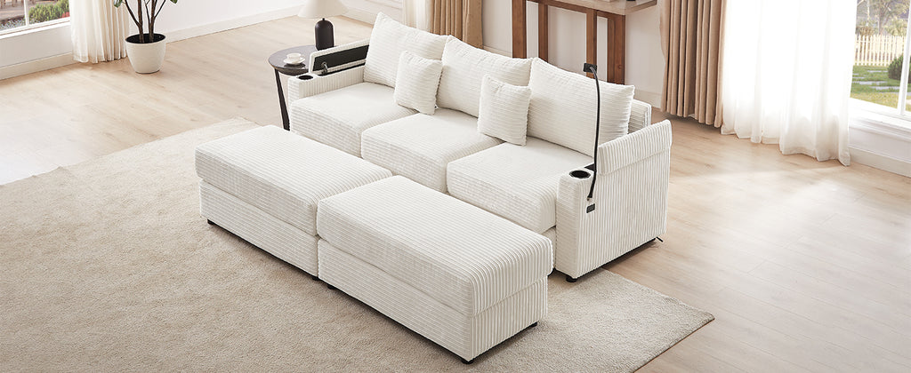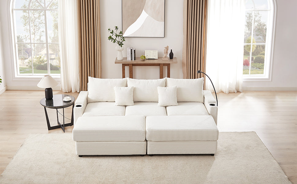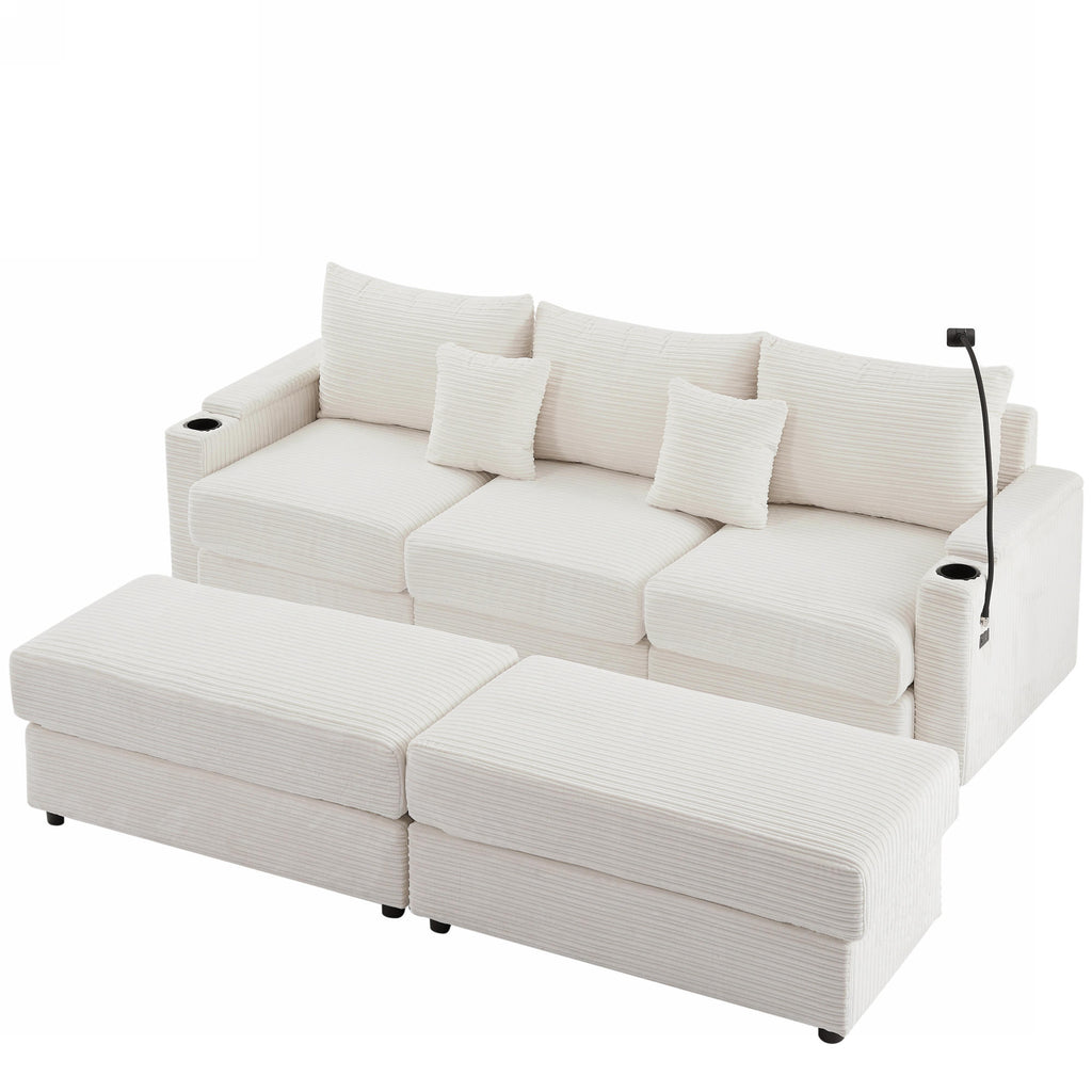 This modular sofa set features multiple seating options and ottomans, allowing you to purchase additional modules to create a variety of configurations. The movable ottoman adds flexibility, enabling you to find the perfect spot for sitting or lounging. Crafted with a solid frame and wrapped in textured corduroy upholstery, this set combines durability with style. Ideal for your living room, home office, or reception area, it effortlessly reflects your personal taste while creating a cozy atmosphere.