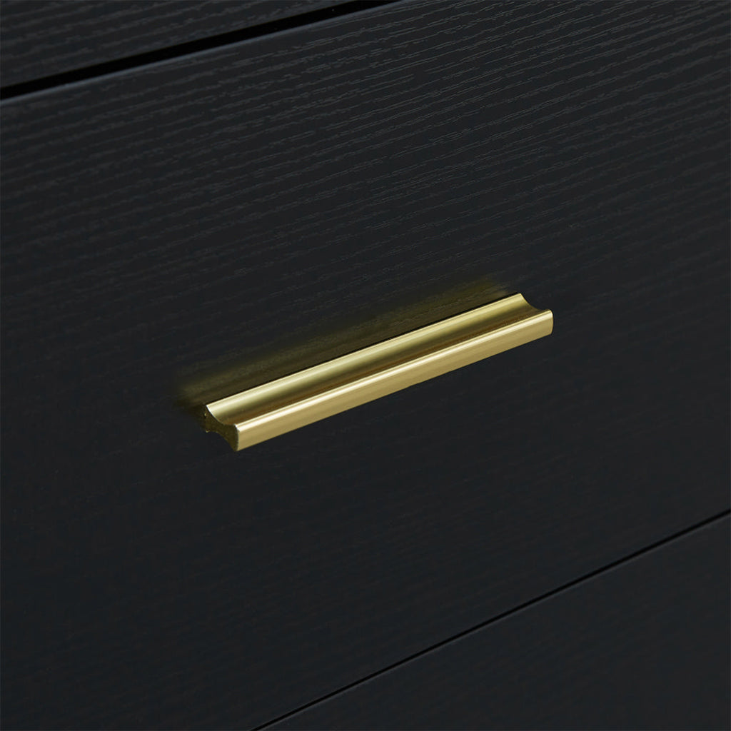 - 1.Simple style: This dresser with golden handles adds a touch of modern elegance to your bedroom. Its classic design complements any décor style, making it a versatile addition to your home