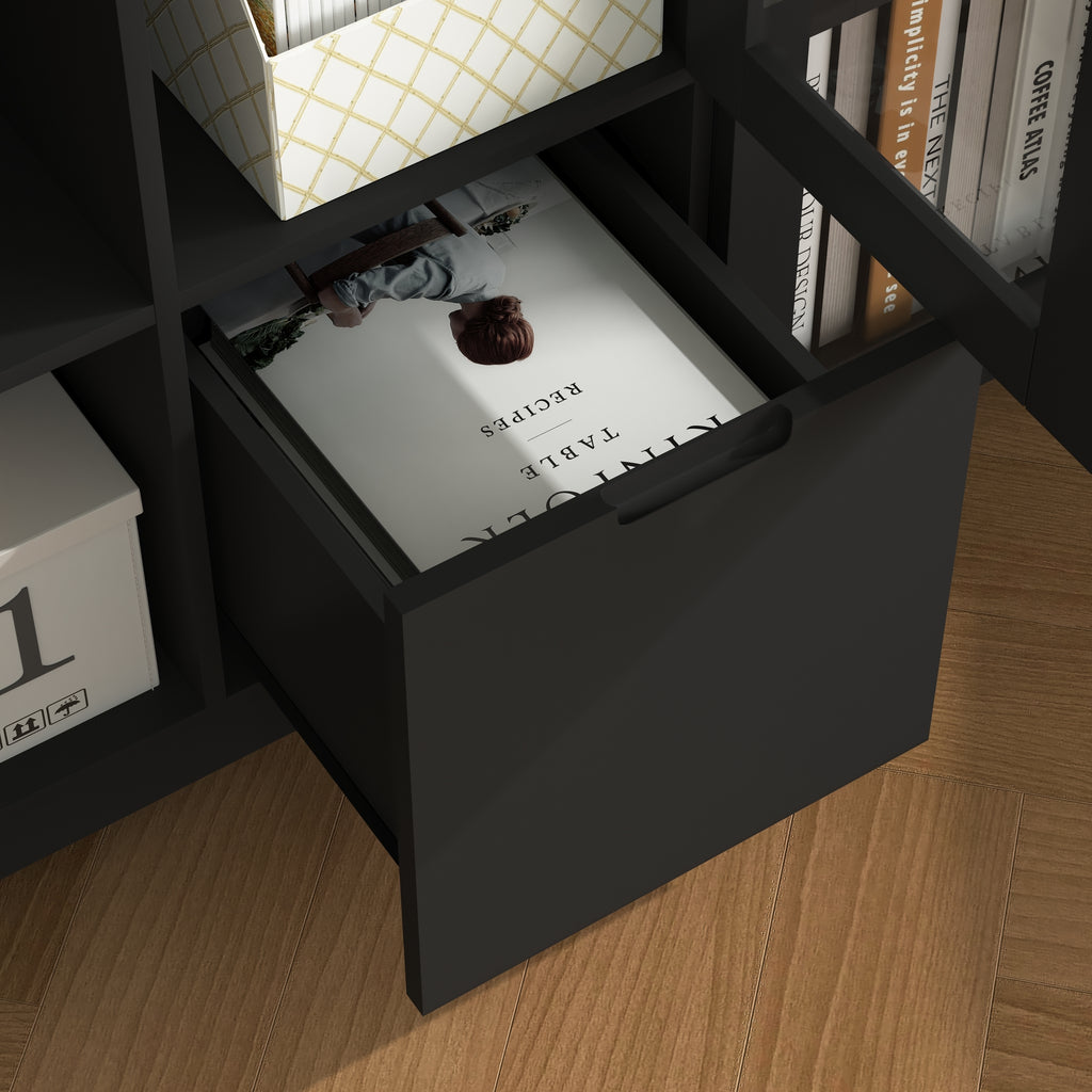 - Black Color Design: Modern style and decorative 2 doors with glass inside make it fascinating in any room space. Handleless design feelings of exquisite. Combining elegance, modern feeling. Unique appearance and classic style make it matched in kinds of living space styles. This storage cabinet being practical to meet various storage needs.