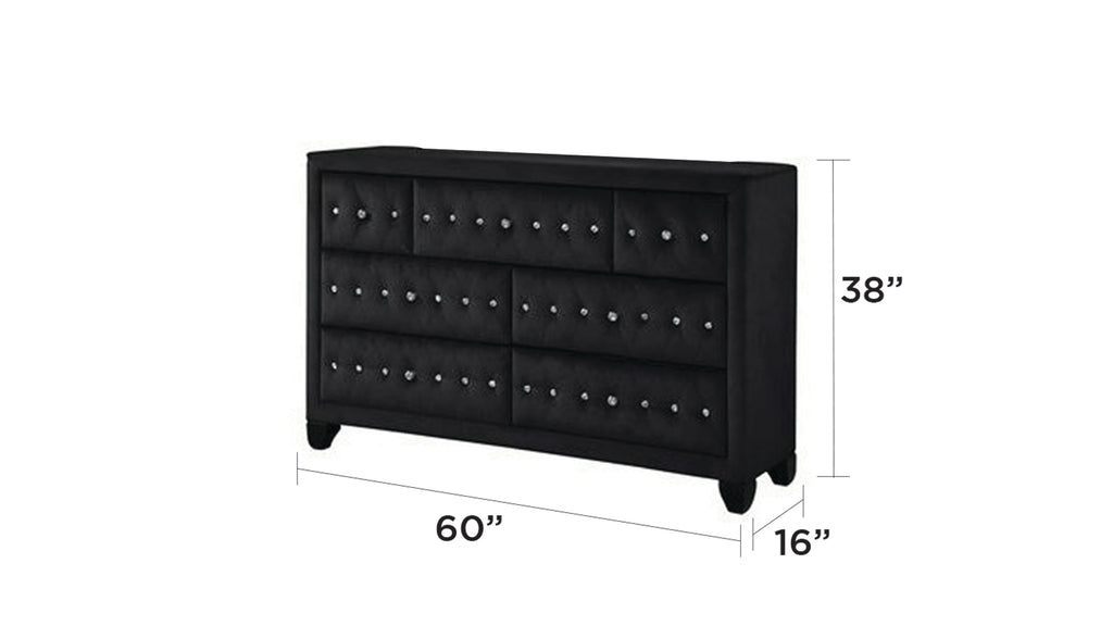 This modern bedroom set offers both elegance and functionality, centered around a luxurious upholstered bed with a tall, tufted headboard that adds a touch of sophistication to any bedroom. The bed is the highlight of the set, designed to be the focal point of your space, providing both style and comfort. Its tall headboard enhances the room's vertical space, creating a dramatic statement. The set also includes a spacious dresser and a mirror that complements the design, with the option to add a chest for even more storage. The nightstand provides convenient bedside storage, completing the ensemble with practicality and elegance. This bedroom set ensures that your space is not only stylish but also highly functional.