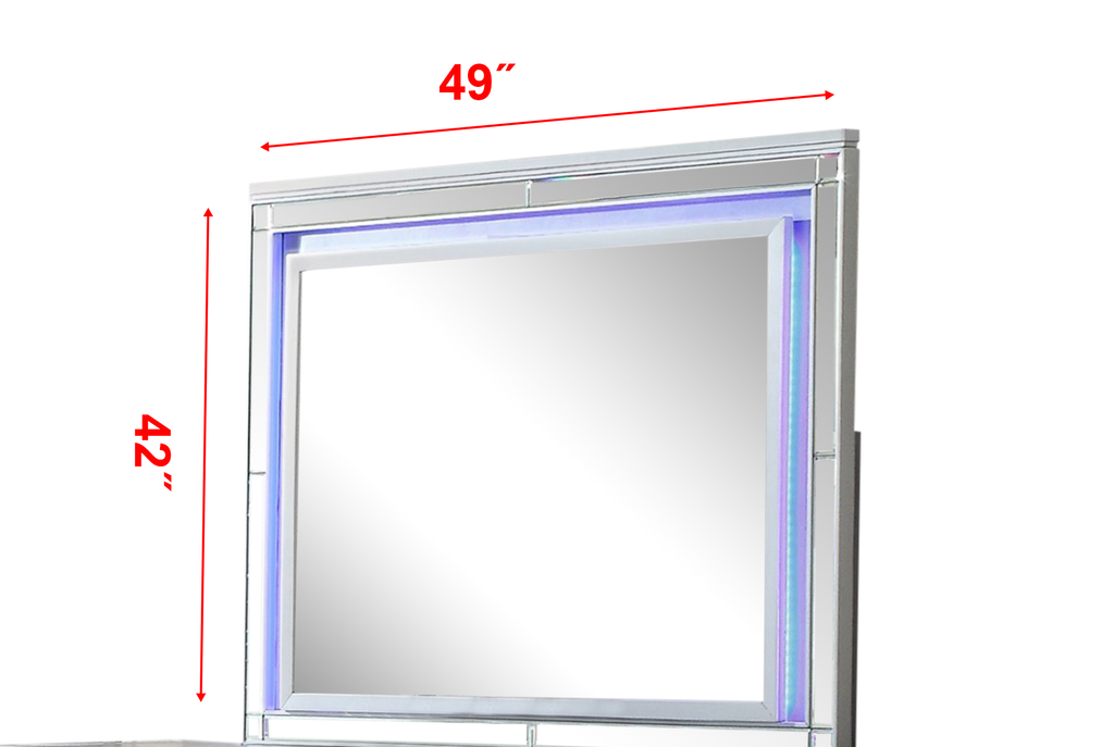 - Dimensions- King bed: 97'D x 80.5'W x 68'H, Dresser: 18'D x 64.5'W x 35.5'H, Mirror: 1.48'D x 48'W x 38'H, Nightstand: 17'D x 27'W x 26.5'H, Chest: 17'D x 36.5'W x 51.5'H.