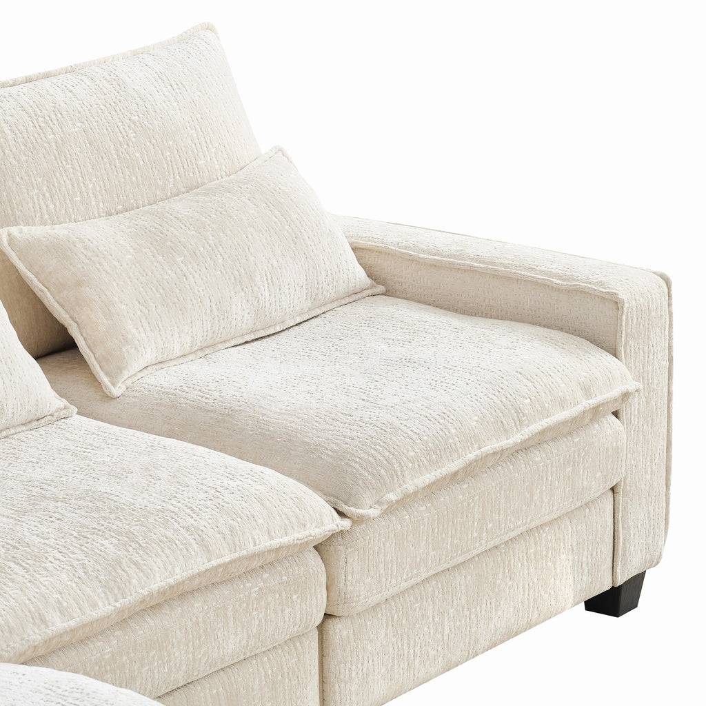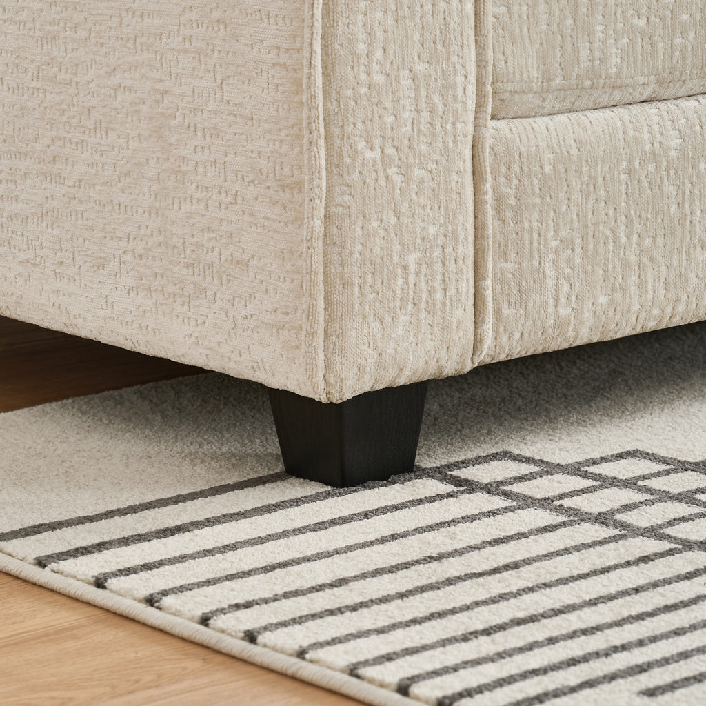 - Modular luxury: sectional-like flexibility with movable ottoman. Contoured lumbar support. Dual-density seat prevents fatigue. Tapered legs for visual lightness. Pet-friendly Chenille upholstery.
