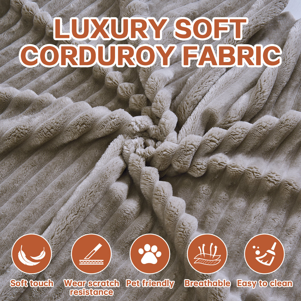 - 3. Plush Corduroy Upholstery: Luxuriously Soft, Durable, and Easy-CareSink into the luxurious feel of premium corduroy fabric. Its velvety, ribbed texture is gentle on the skin and adds warmth and style to your decor. This upgraded material is not only cozy but also highly durable, wrinkle-resistant, and easy to maintain for long-lasting beauty.