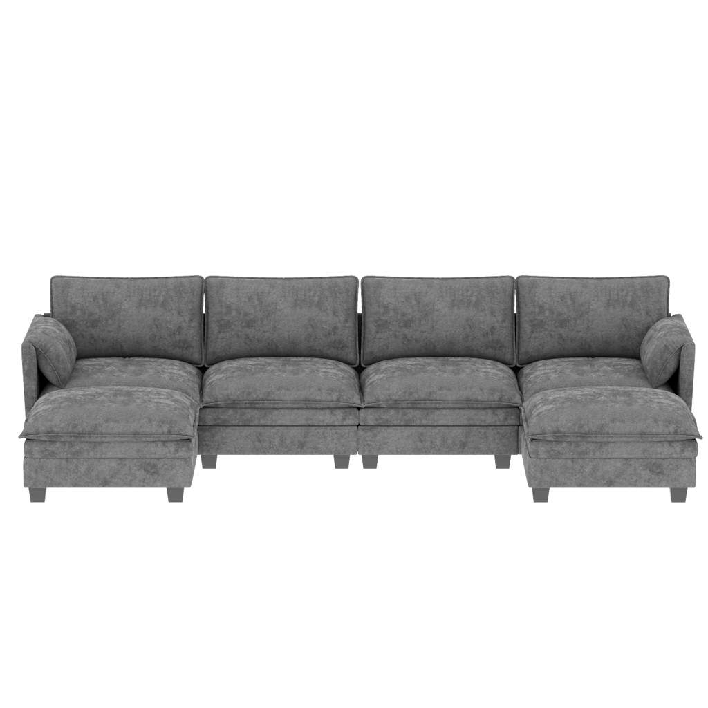- The 6-seater sofa and ottoman are made of breathable skin-friendly fabric, seat cushions are equipped with pocket springs and high-density foam , cushions can't easily deform and can provide comfortable and soft support for relaxing.