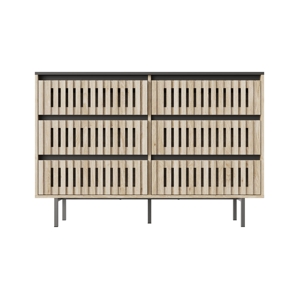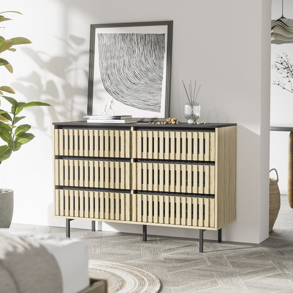 - This storage cabinet has 6 large drawers, providing enough space for storing daily necessities. The vertical striped hollow design makes it easy to find and classify items, keeping your items organized and your room tidy!