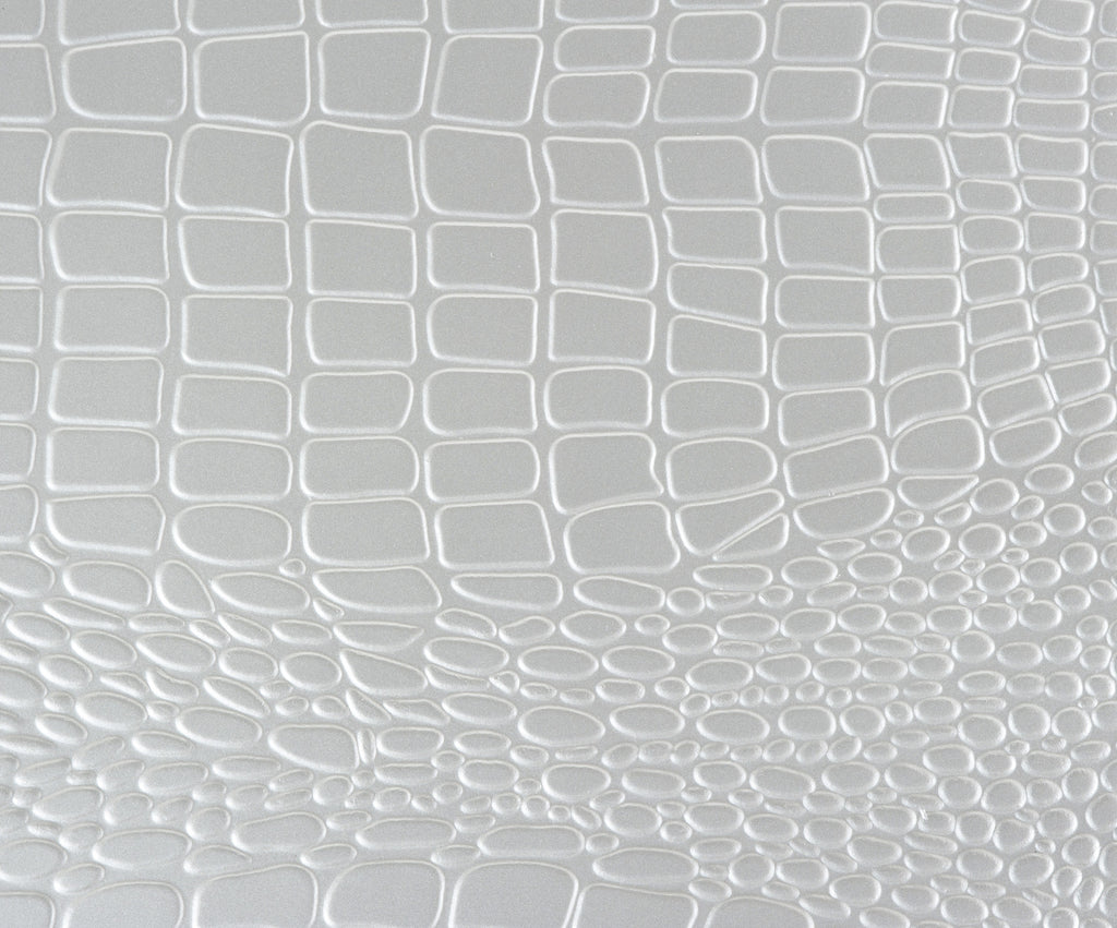 - Faux alligator embossed, textural drawer fronts with beveled mirror trim